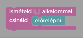 A ciklusoknak több fajtája létezik. A számlálóciklus - lásd az első képen - használatakor megadjuk, hogy pontosan hányszor ismételje a program a ciklusmagban lévő utasítást. A második képen látható ciklus addig ismétli a ciklusmagban lévő utasítást, amíg a célba nem ér a szereplő, vagyis itt nincs megadva az ismétlések konkrét száma - ez egy elöltesztelő ciklus, tehát megnézi, hogy a célban vagyunk-e, és ha nem, akkor végrehajtja a ciklusmagban lévő utasítást.